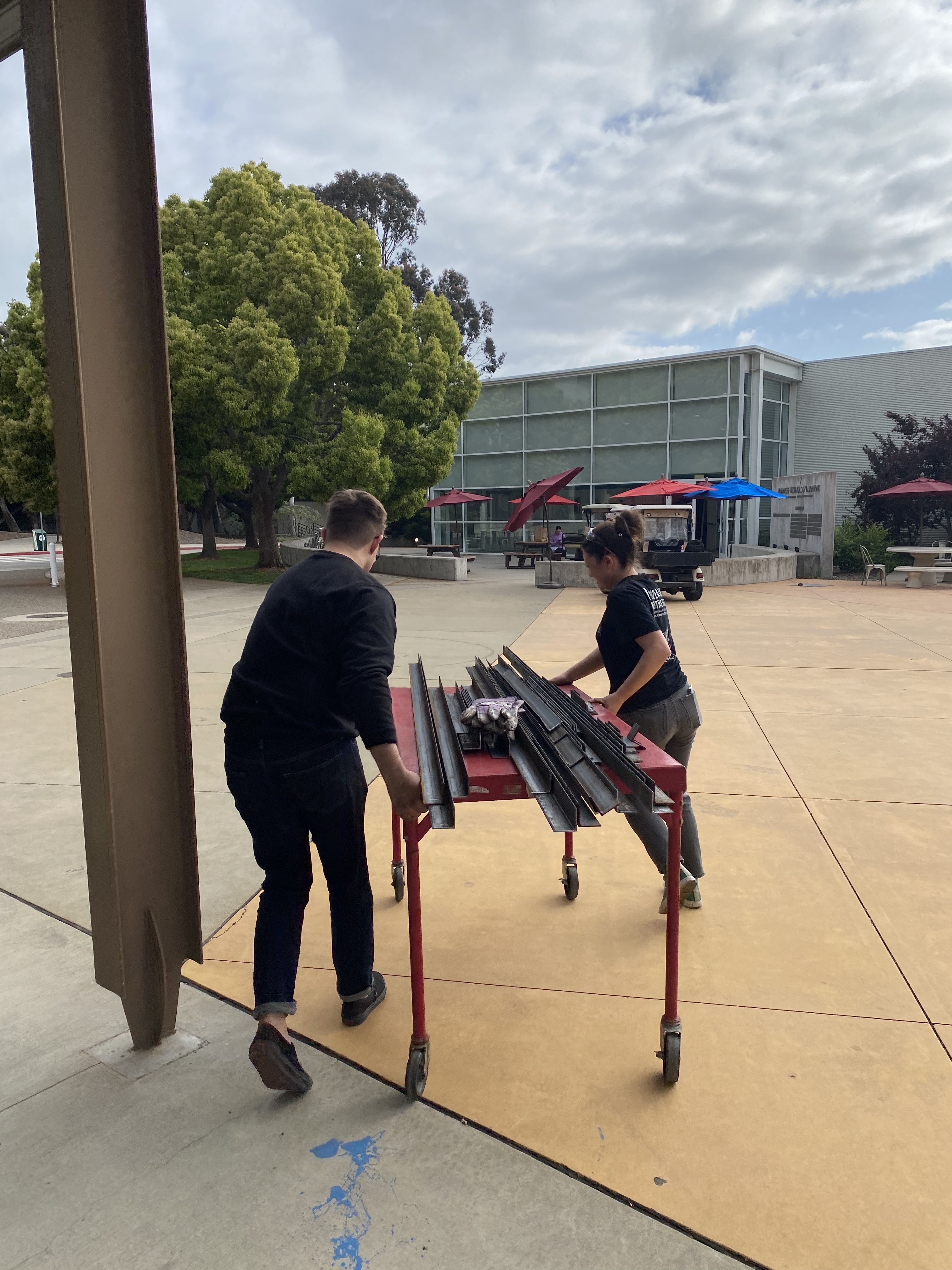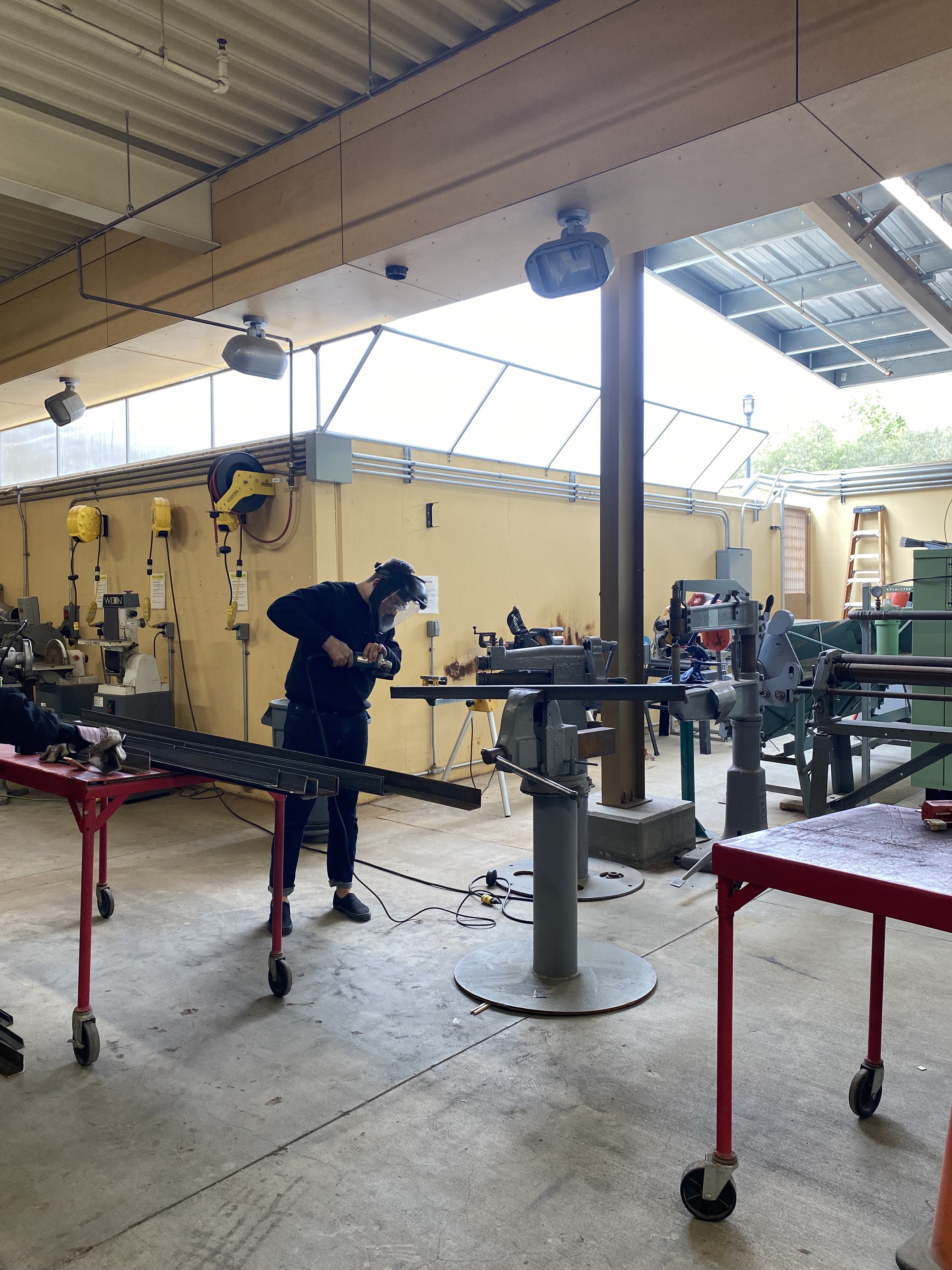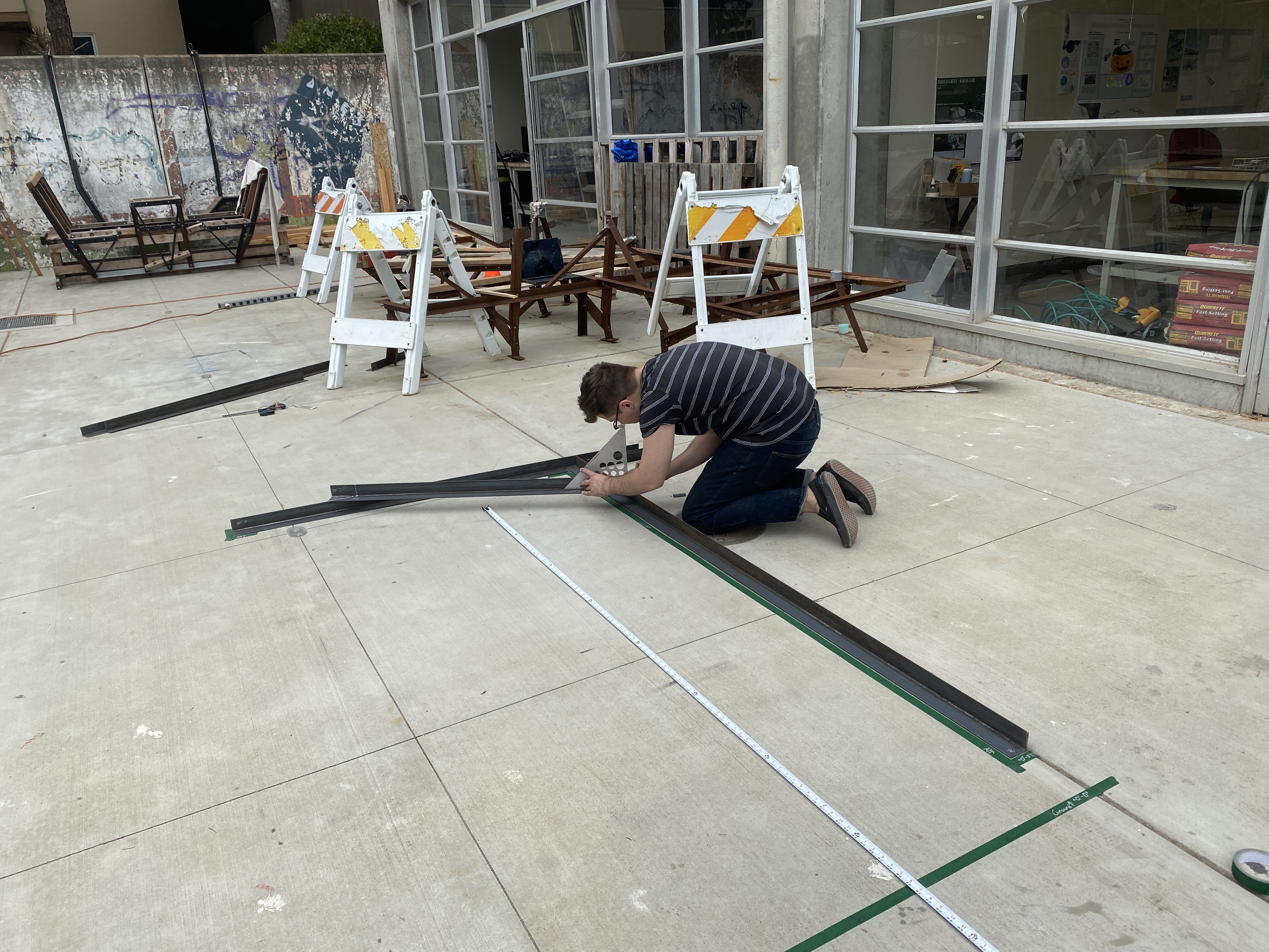 The original group of four members including myself, Morgan Miller, Nancy Padilla, and J Do conceptualized the bench design in collaboration with Gage Wiley who helps run the Cal Poly Conservatory. Once design was settled, we decided on materiality and started the fabrication process. By the end of spring quarter we had completed preparing all of the steel components for assembly and assembled temporarily to make sure each piece was correct before galvanization.