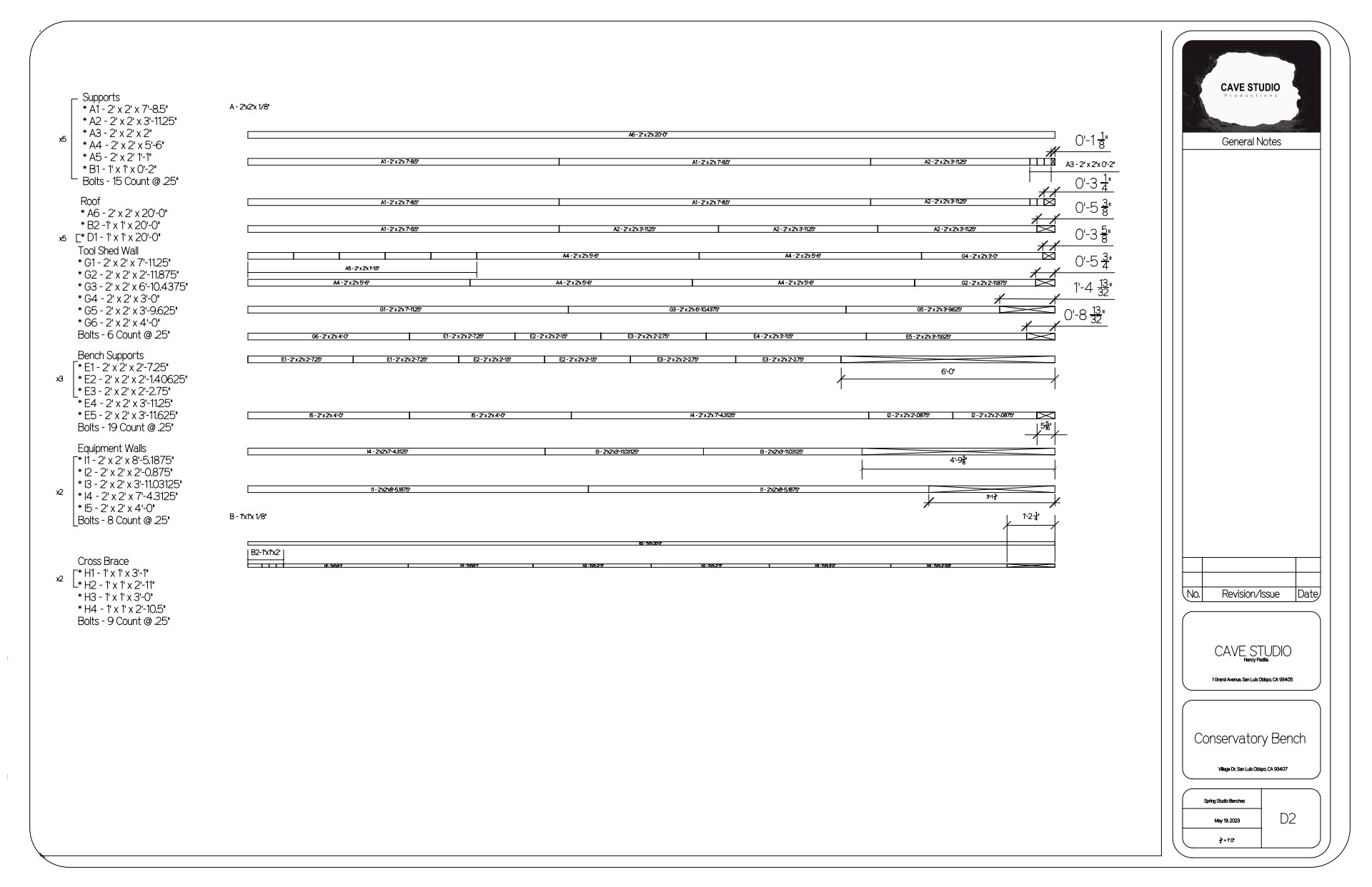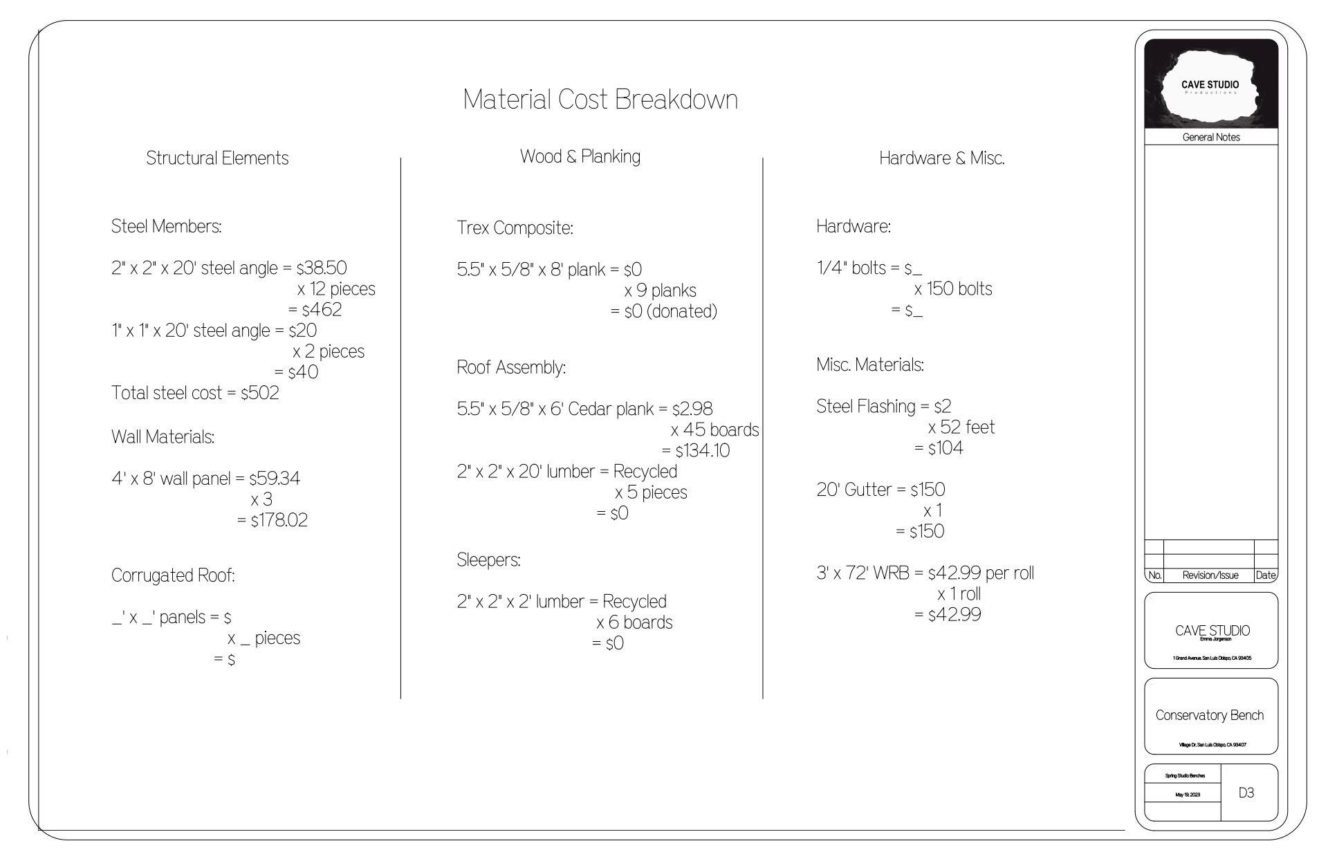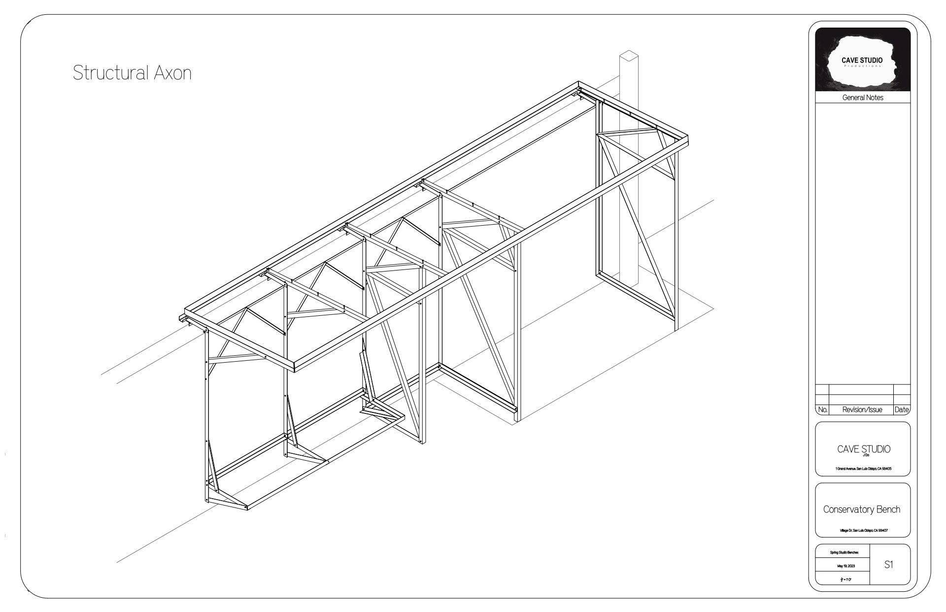 The original group of four members including myself, Morgan Miller, Nancy Padilla, and J Do conceptualized the bench design in collaboration with Gage Wiley who helps run the Cal Poly Conservatory. Once design was settled, we decided on materiality and started the fabrication process. By the end of spring quarter we had completed preparing all of the steel components for assembly and assembled temporarily to make sure each piece was correct before galvanization.