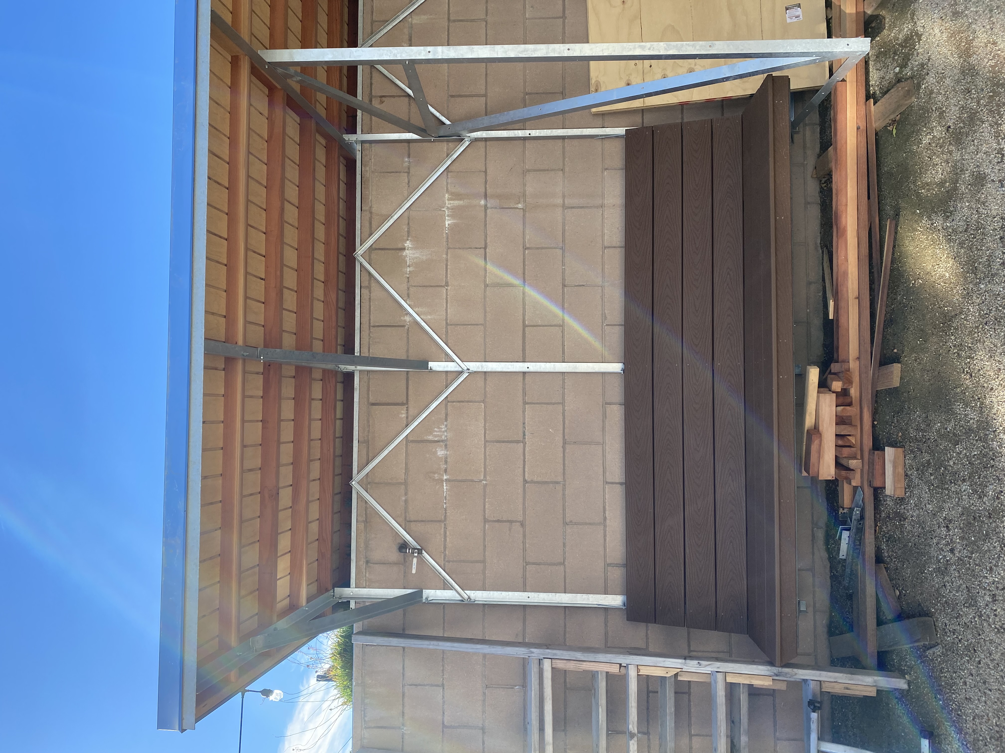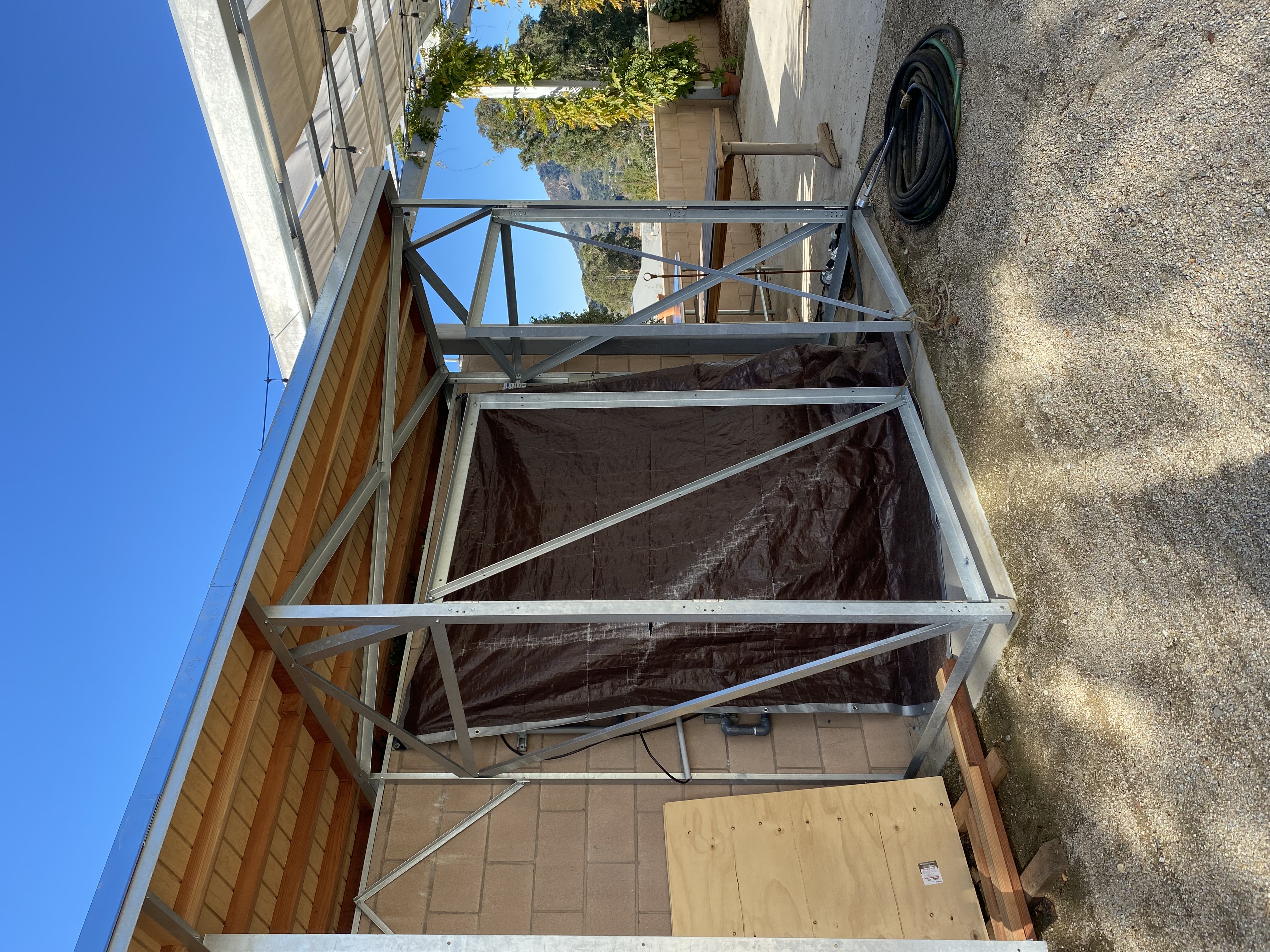 A new team overseen by Jonathan Reich picked up the project in the fall to get the brackets galvanized as well as install the structure up at the conservatory. Final decisions about wall and door panel materiality are still happening, more pictures will be added when the door coverings are attached.