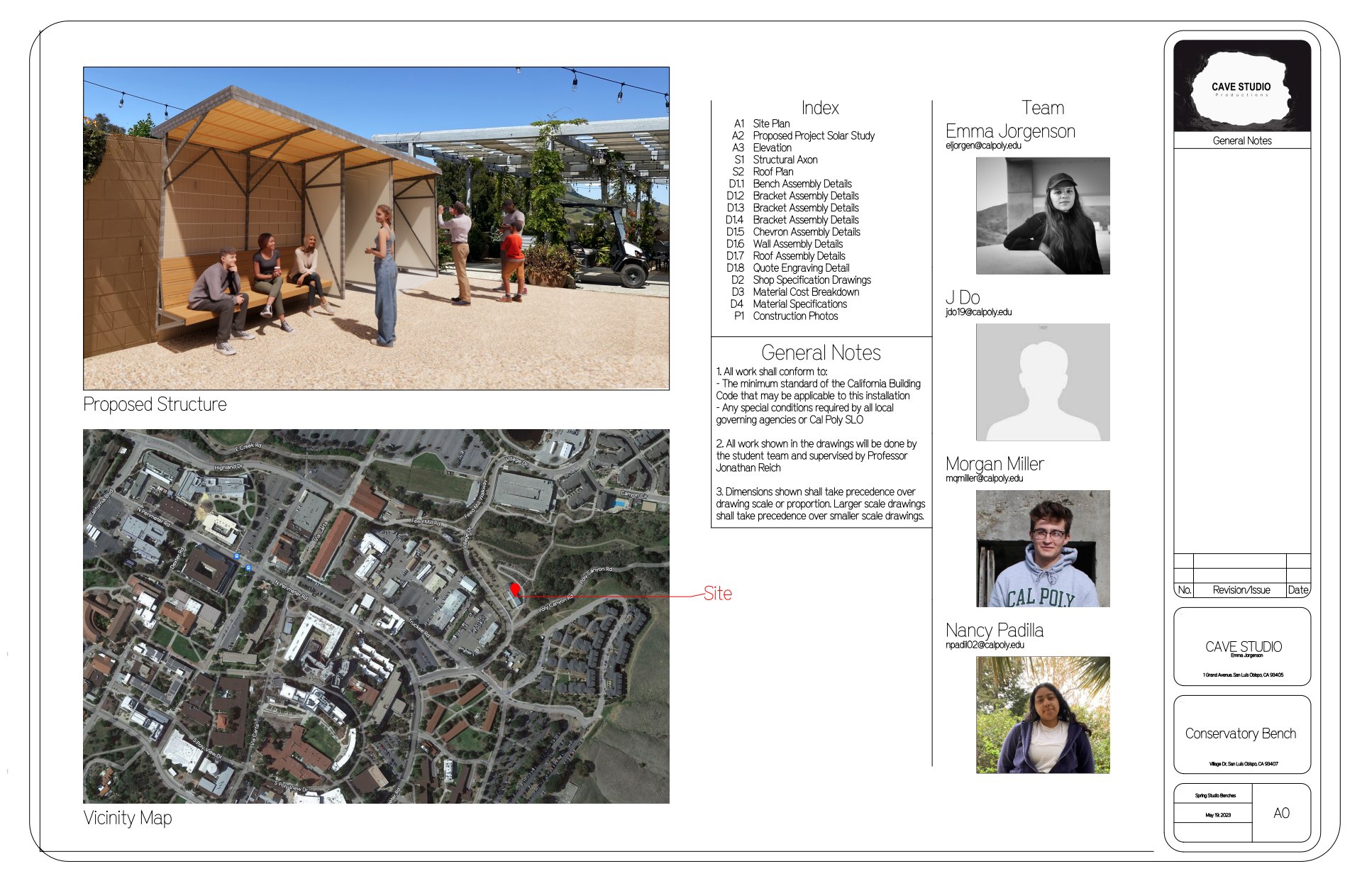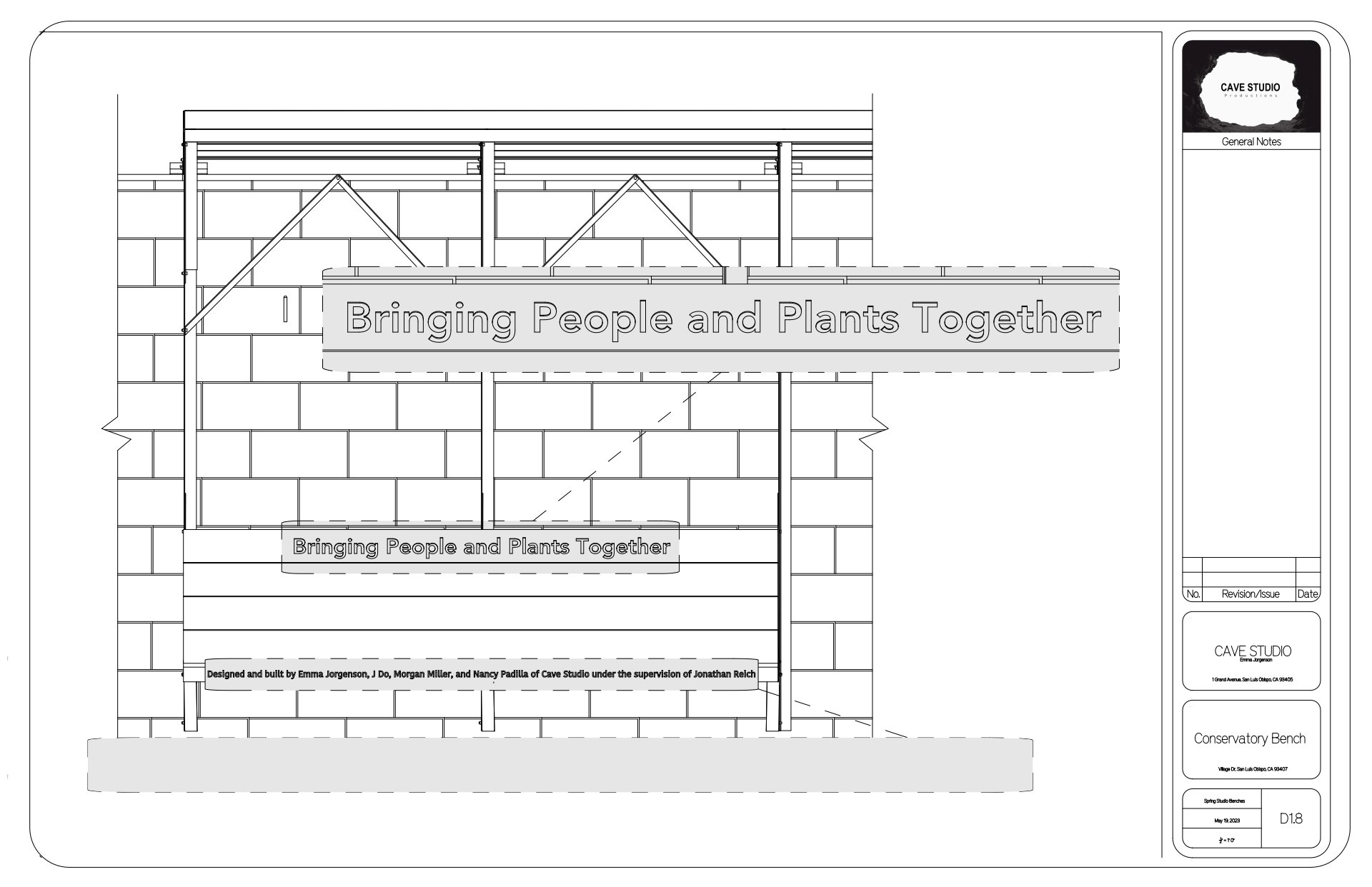This project was a group effort in which we found a site on campus on which an existing wall could be utilized for a new purpose. Below is the final set of construction drawings, with each sheet denoting who in the group created the drawings.