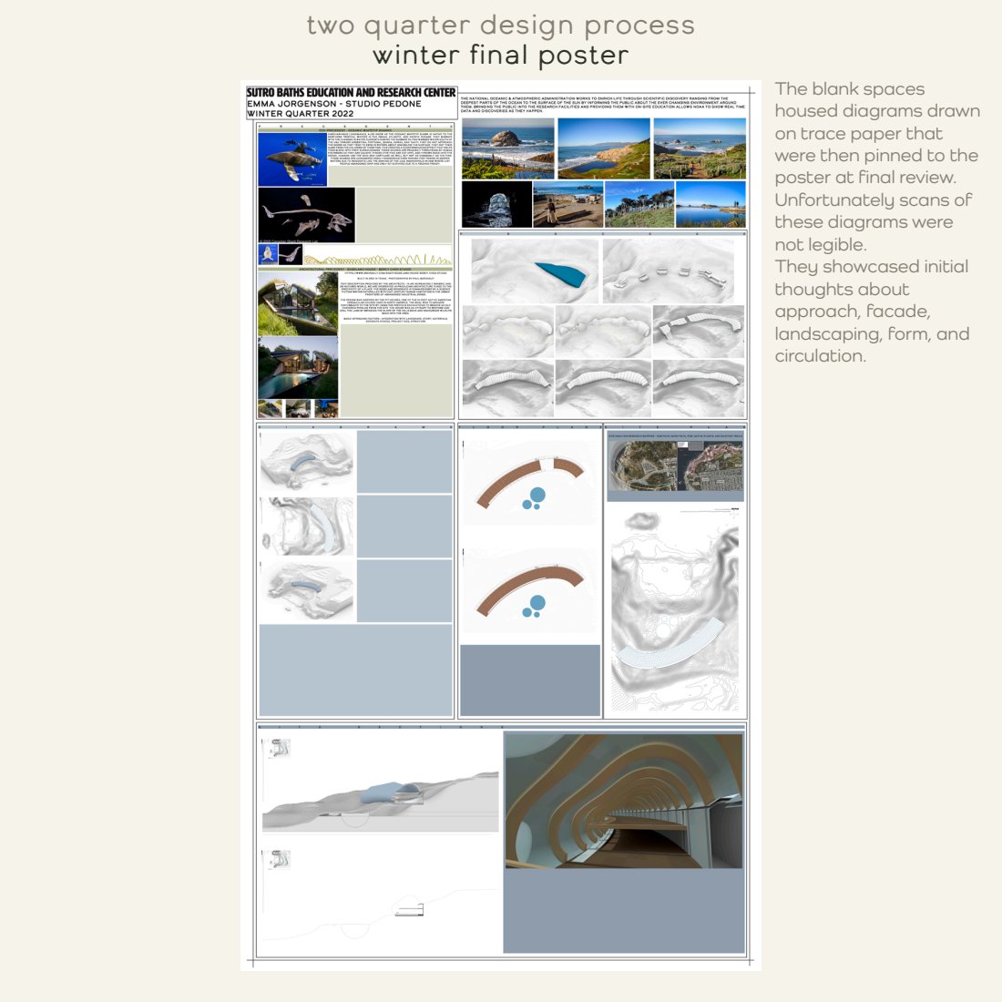We were given a simple brief : Create a research center for NOAA that they can also use to provide educational services to the public. Our site was Land’s End in San Francisco.